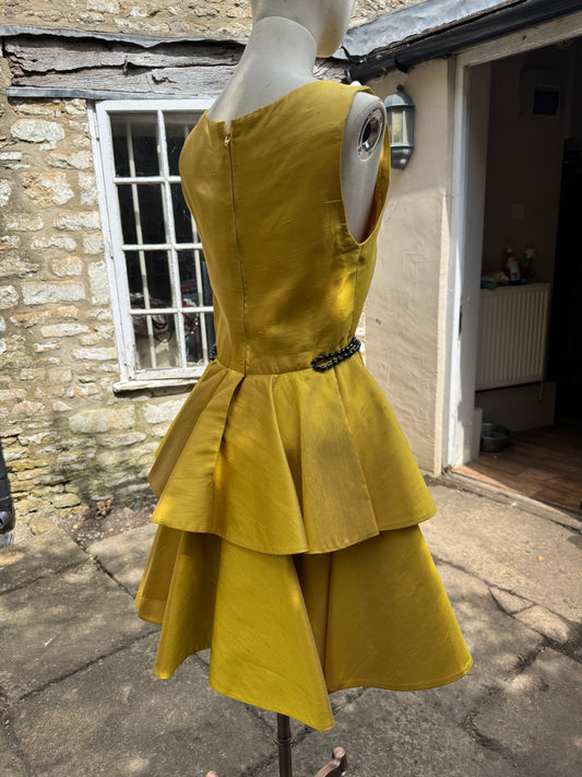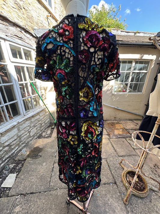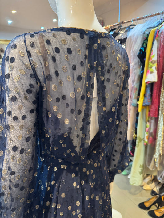 Hardy Amies 1970’s midnight blue gold polkadot dress