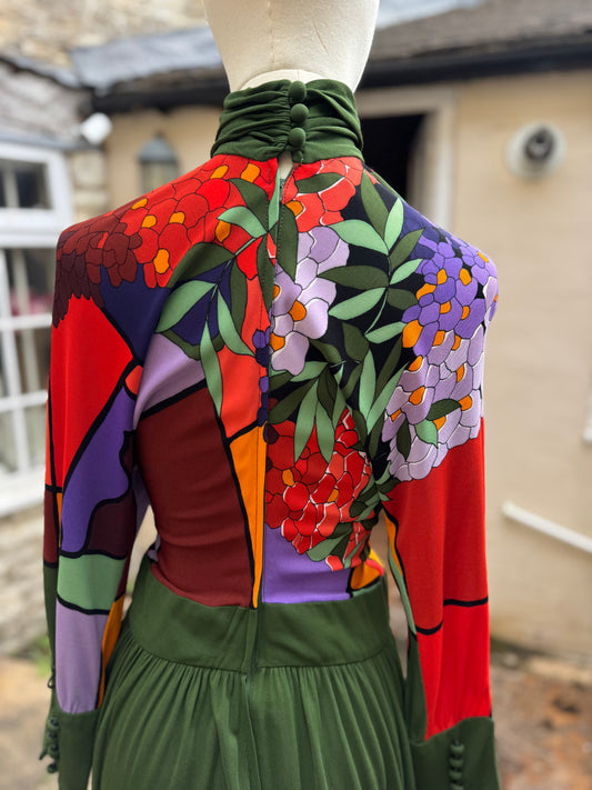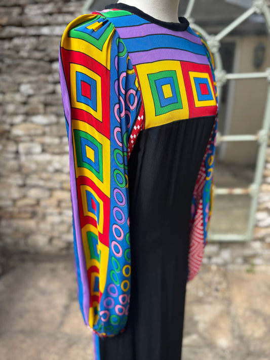 Rare Pucci Style Balloon Sleeve 1970s Maxi Dress