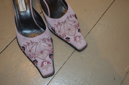 L.K Bennett silk embroidered mules
