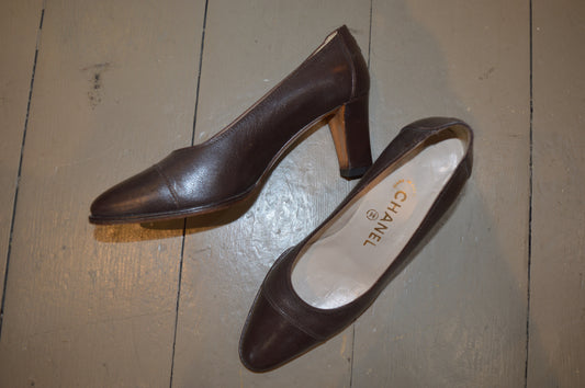 Vintage Chanel brown leather pumps