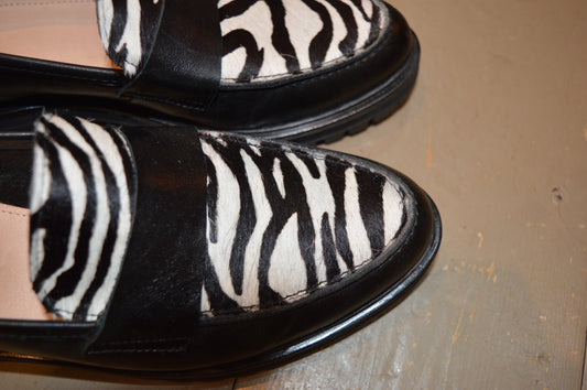 André black leather and zebra loafers