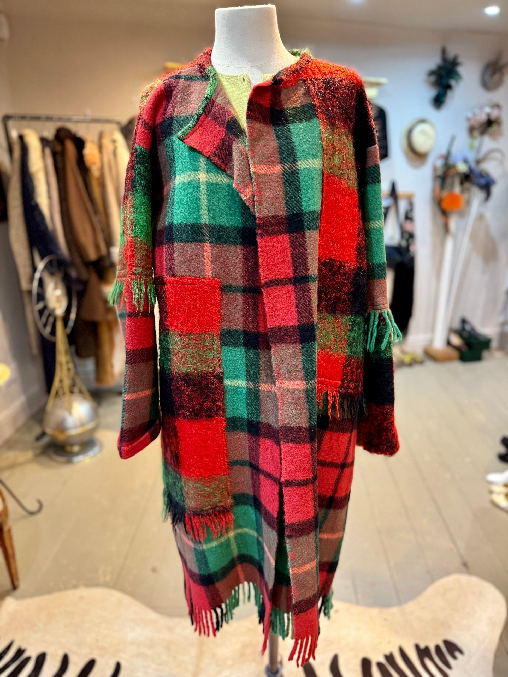 NEW IN - Our Cotswold Coat - Green Black Red Mohair & Tartan