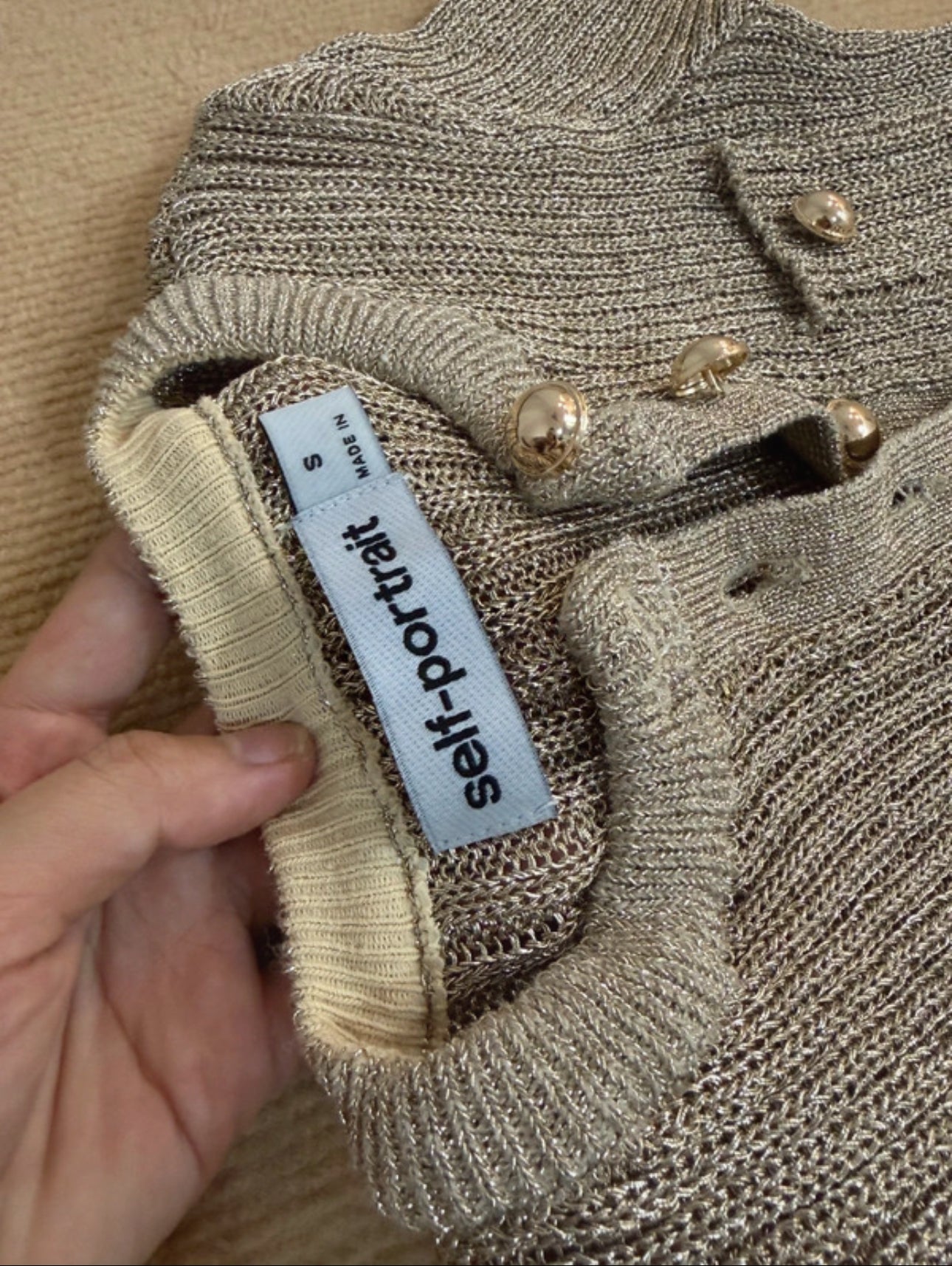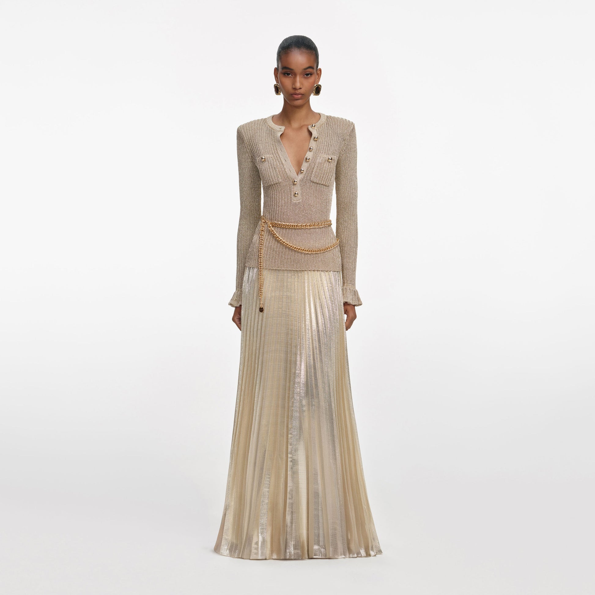 Self Portrait Gold Lurex Ribbed Knit Maxi Dress Petite Small